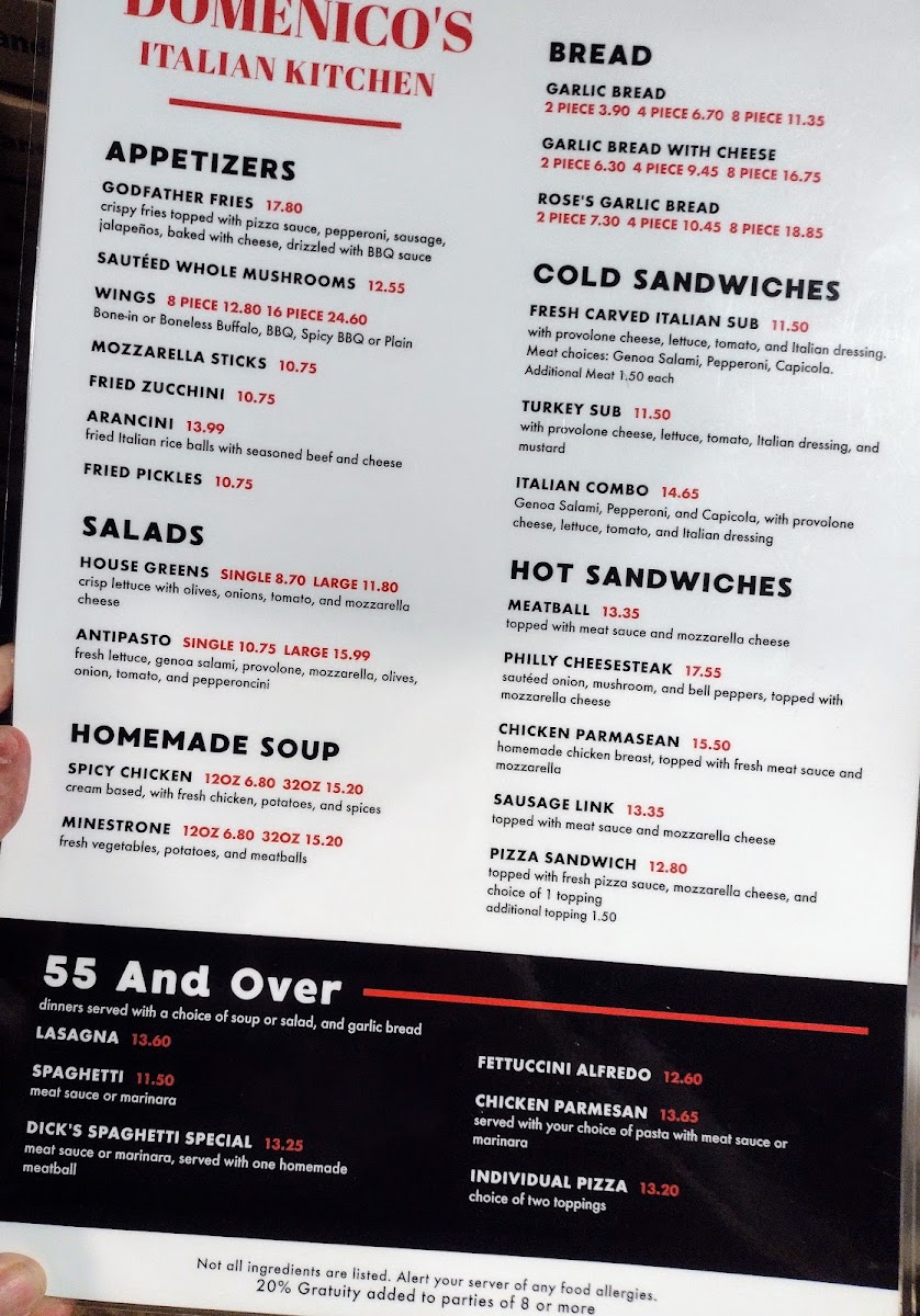 The dining atmosphere at Domenico's adds to the experience. With its cozy seating, welcoming decor, and friendly service, you’re guaranteed to feel right at home. Customers rave about the warm ambiance and attentive staff. One patron highlighted the “amazing service” that makes diners feel valued, while another mentioned the generous portion sizes that challenge even the heartiest of appetites—perfect for leftovers! Just be mindful of the limited restroom facilities, as there’s only one bathroom available for both men and women.